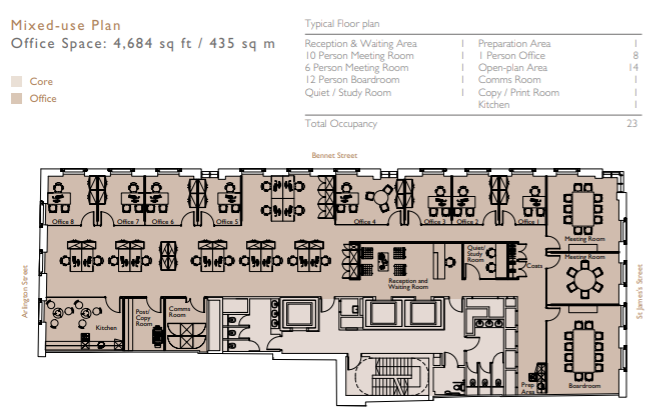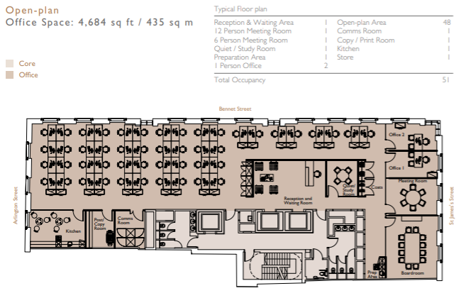 The 4th and 5th floors at 55 St. James's Street will available from Q1 2026 offering high quality Cat A space in a prime St. James's location. EPR Architects have designed the building to be a refined and bespoke office environment whilst embracing the context of the wider St. James's Conservation Area.